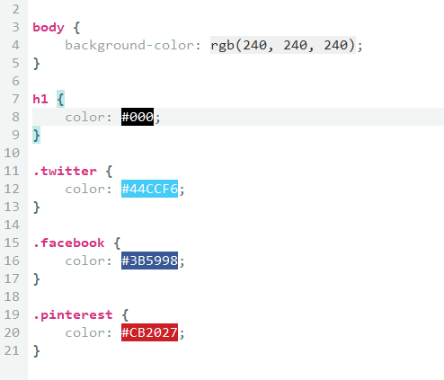 Inline color preview gives an instant visual overview of color code representations.