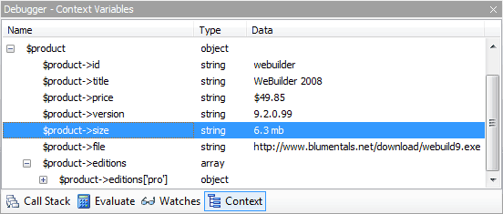 PHP debugger allows you to view Context Variables and Call Stack, Evaluate expresisons and maintain Watches.
