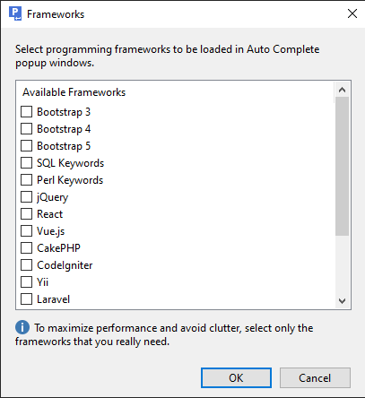 Get more productive with the support for popular programming frameworks such as jQuery for JavaScript and Prado, CodeIgniter, Yii and Symfony for PHP. Frameworks are supported in Auto Complete and Language Browser. Let us know if you miss any particular library.