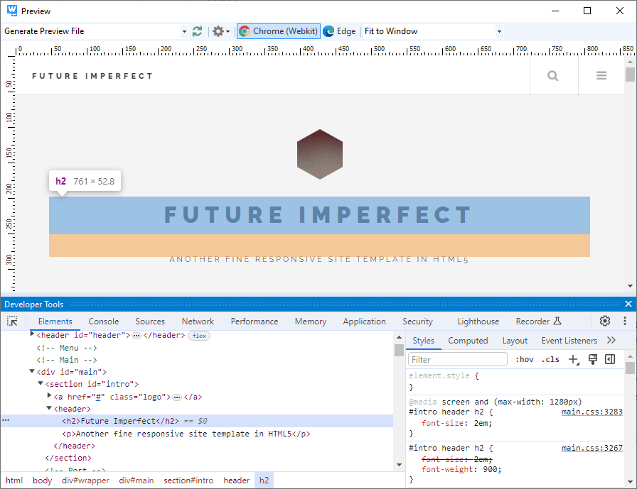 When creating HTML and CSS layouts, the built-in in-depth CSS intelligence comes in handy.