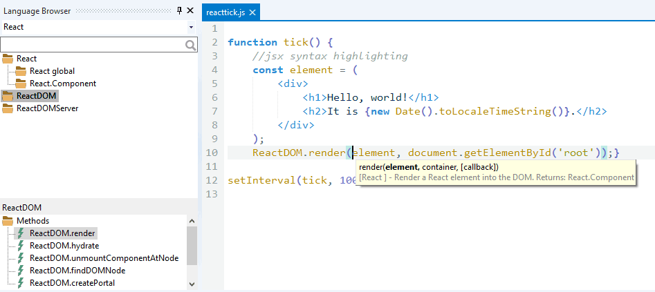 Support for the React framework - React JSX syntax highlighting, Auto Complete and more.