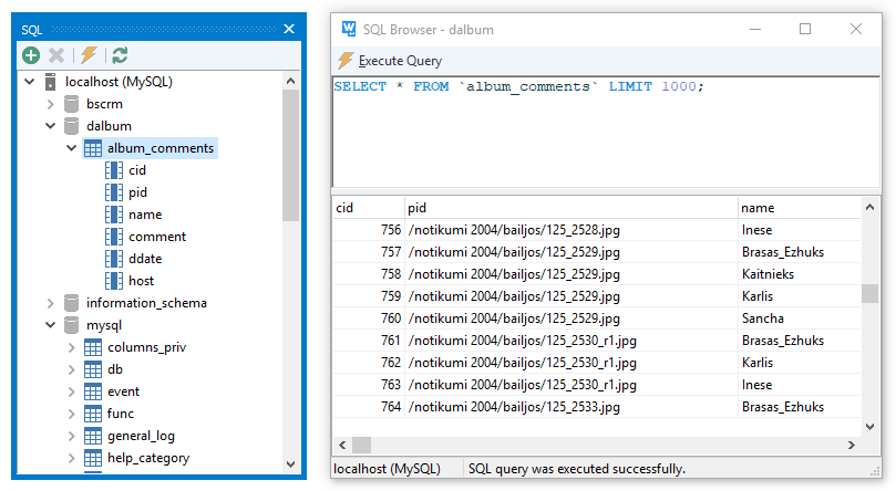 SQL Database Explorer allows you to browse database structure and test SQL queries. Supported databases include MySQL, PostgreSQL, Firebird, SQLite.
