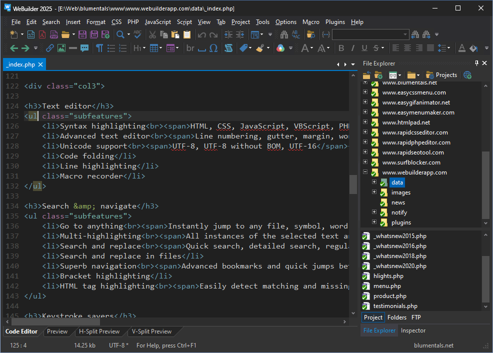 WeBuilder a fully featured HTML and XHTML editor with all essential functions, such as HTML Auto Complete, Inspector and integrated documentation.
